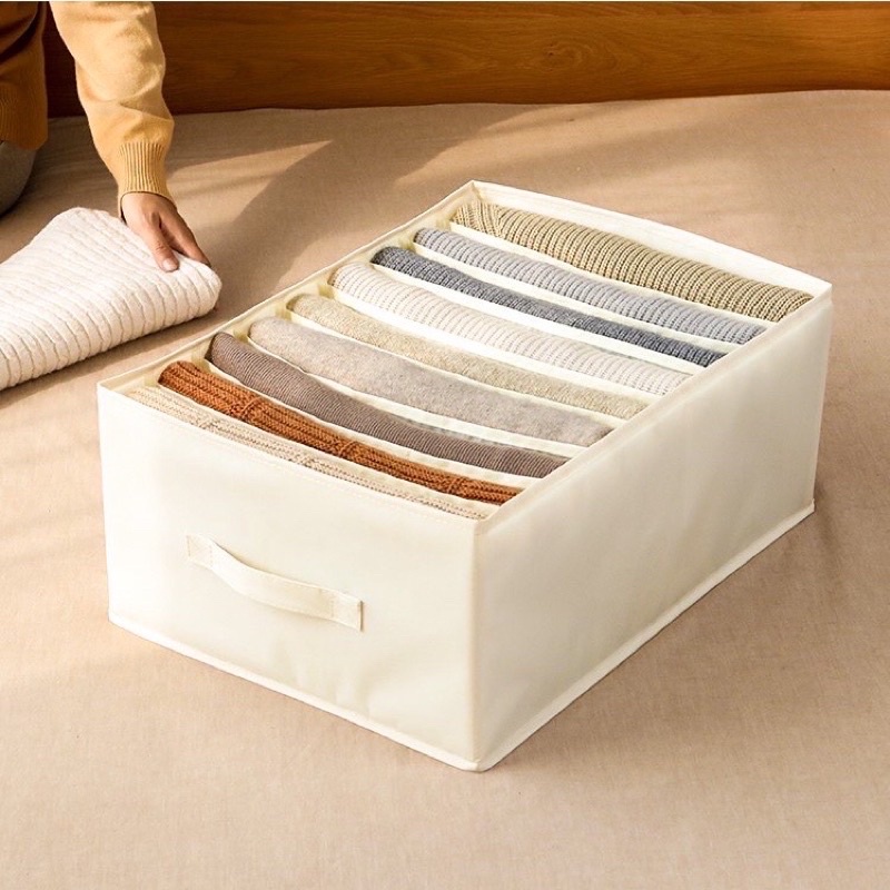 - Mỗi hộp được chia 7 ngăn xếp quần bò, áo len một cách dễ dàng mà vẫn giữ được phom dáng.
