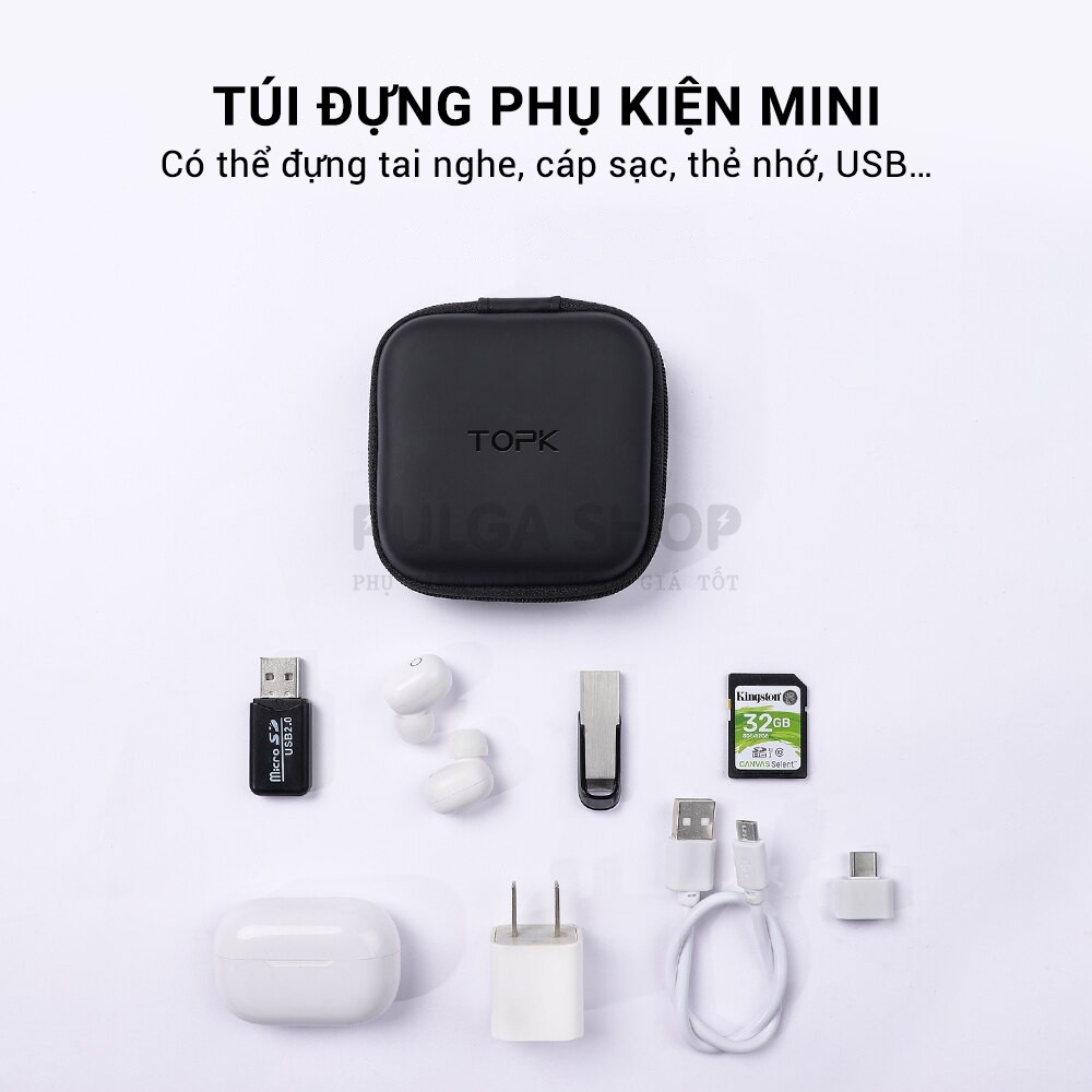 Giới thiệu Hộp Đựng Tai Nghe/Dây Cáp Sạc TOPK J07 - Bao Đựng Phụ Kiện Mini Thẻ Nhớ/USB Có Túi Lưới Tiện Lợi Chống Sốc, Chống Nước