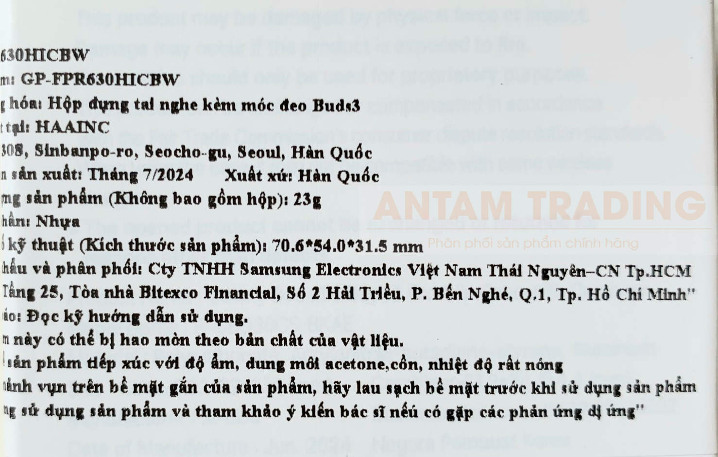 Hộp tai nghe Galaxy Buds3 | Buds 3 Pro sản xuất tại Hàn Quốc