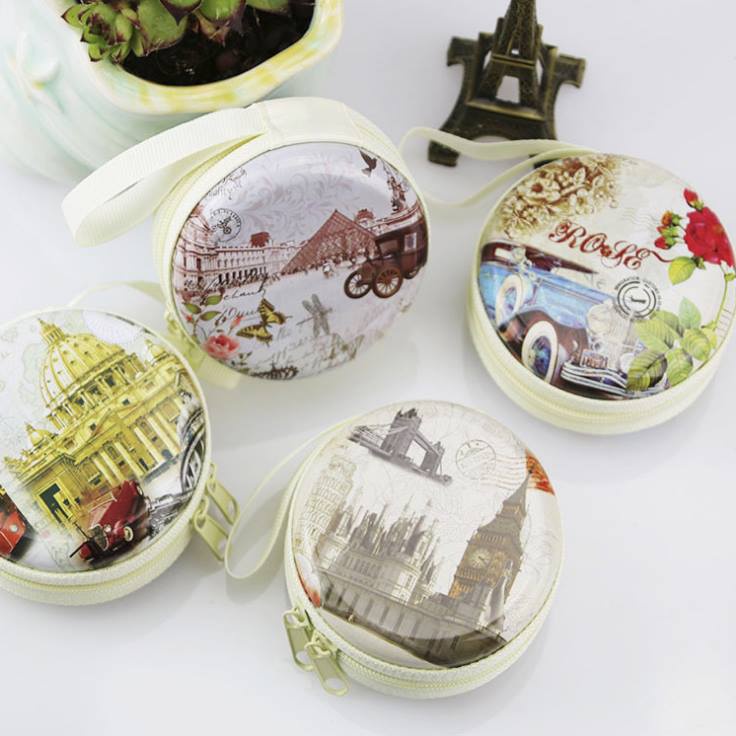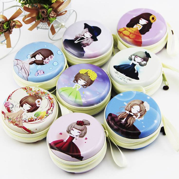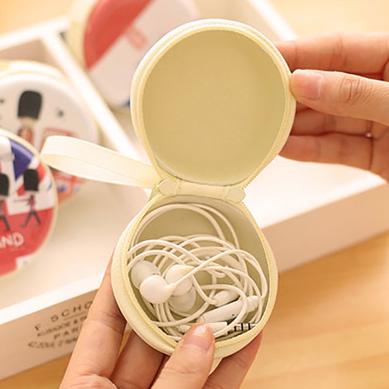 Hộp đựng tai nghe thiết kế đáng yêu với kiểu dáng tròn nhỏ nhắn, họa tiết ngộ nghĩnh, có khuy kéo chắc chắn.