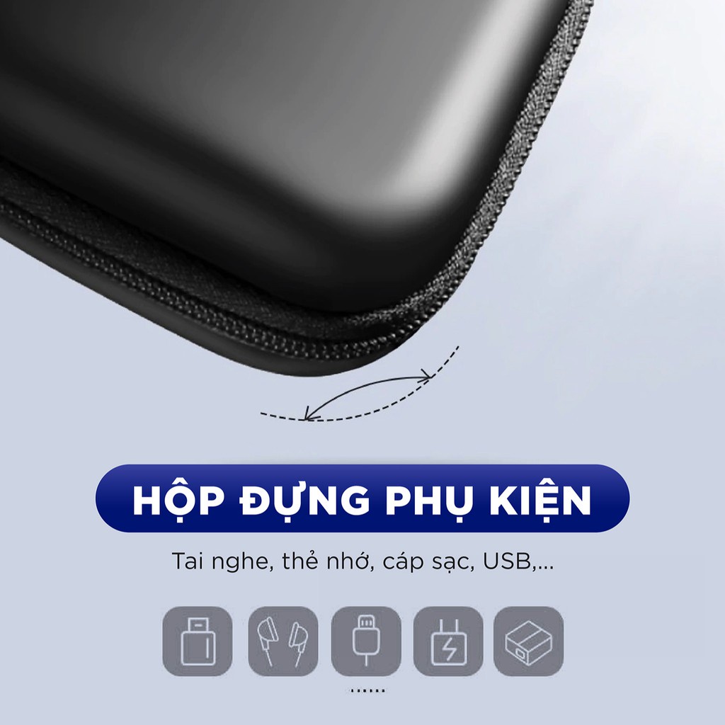 - Hộp đựng phụ kiện công nghệ như tai nghe, thẻ nhớ, cáp USB; chống sốc chống nước.