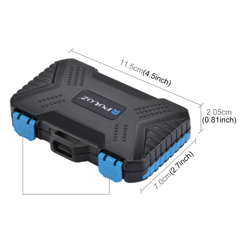 Hộp được làm bằng vật liệu nhựa ABS thân thiện môi trường, phía trong bằng cao su nhiệt dẻo, đàn hồi tốt. Hộp được thiết kế chống sốc, chống thấm nước bảo đảm an toàn cho thẻ nhớ, nhỏ gọn dễ dàng mang theo.