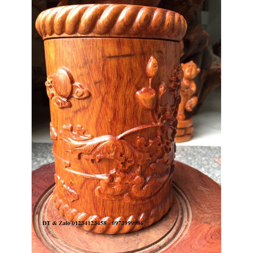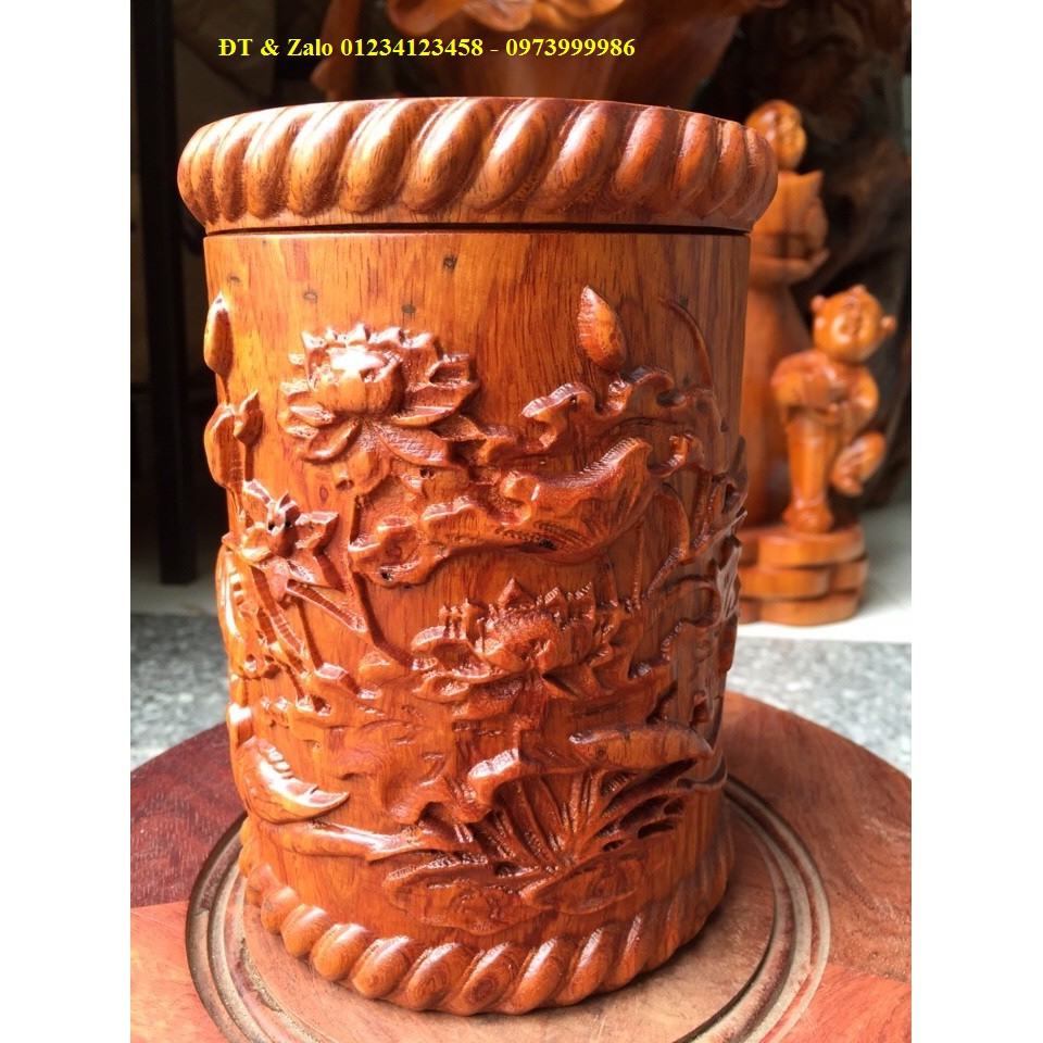 Hộp đựng trà bằng gỗ HươngHộp đẹp, đục cảnh Hoa Sen và Cá Chép. Sản phẩm phù hợp làm quà biếu, tặng Sếp, mừng Tân Gia hoặc trưng bày phong thủy trên bàn tiếp khách
