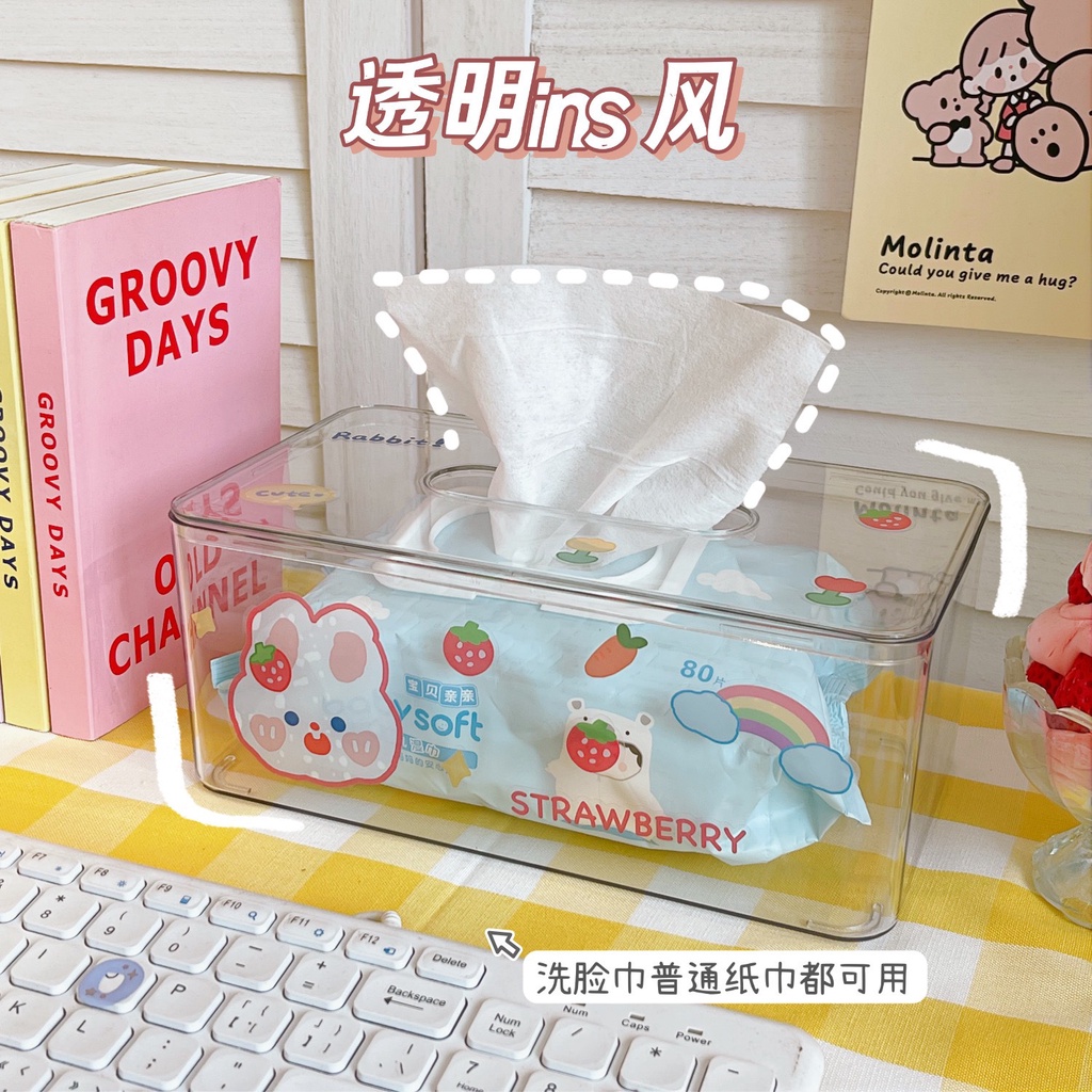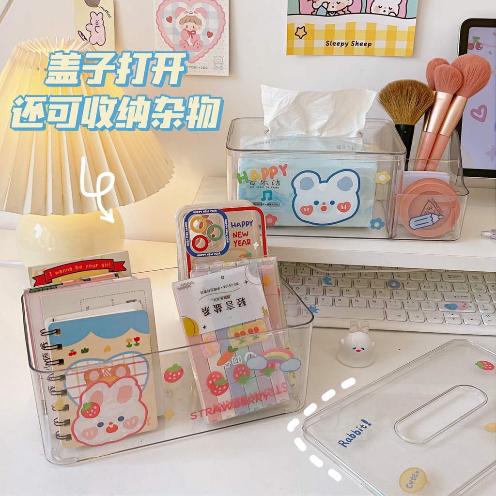 HỘP ĐỰNG TRONG SUỐT KHĂN GIẤY, PHỤ KIỆN NHIỀU NGĂN TIỆN LỢI DECOR DỄ THƯƠNG XU HƯỚNG HIỆN ĐẠI HOTTREND