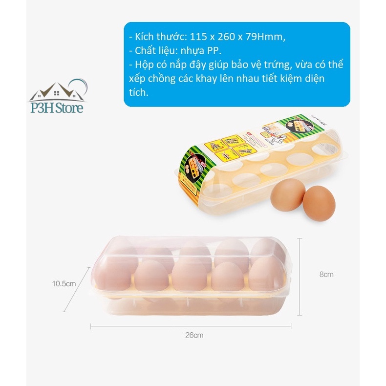 Khay đựng trứng 10 ngăn có nắp đậy Nhật Bản