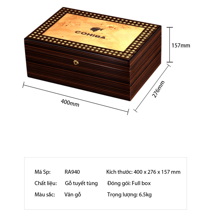 Giới thiệu Hộp Đựng Tủ Giữ Ẩm Cohiba RA928 Bảo Quản 80 Điếu Chất Liệu Gỗ Tuyết Tùng Cao Cấp