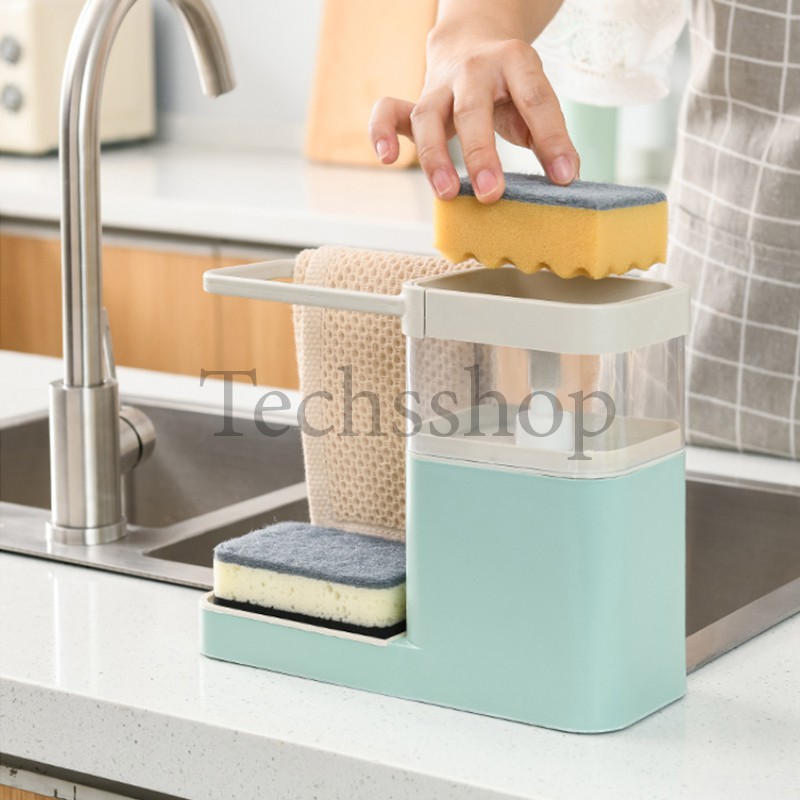 Giới thiệu Hộp Đựng Và Bơm Nước Rửa Chén Có Thanh Treo Khăn Và Khe Hứng Nước Trong Nhà Bếp Đa Năng 4in1 - Tặng Miếng Bọt Biển