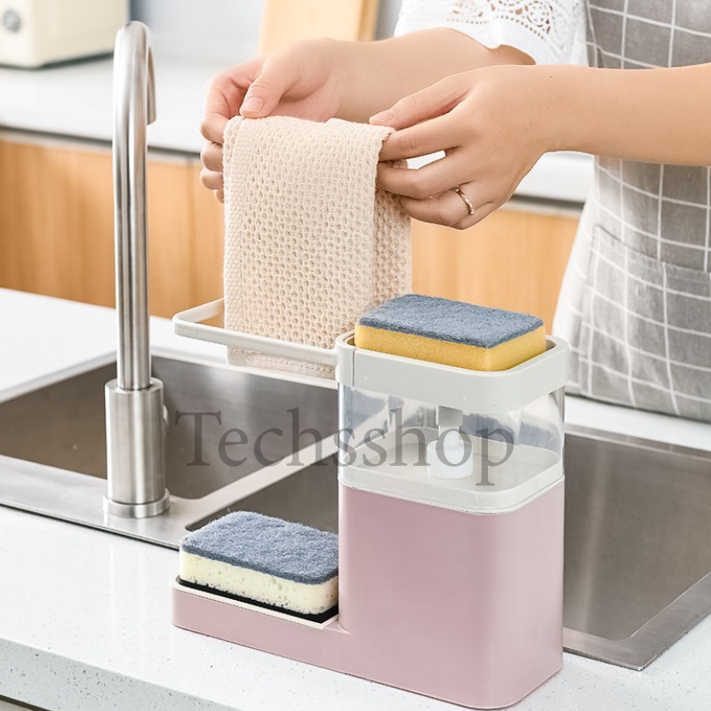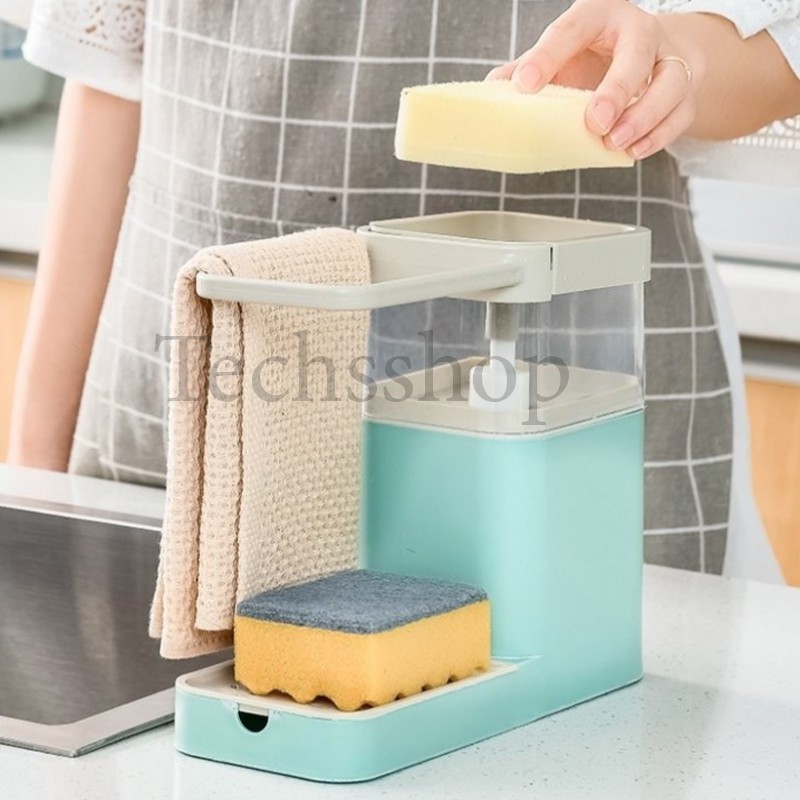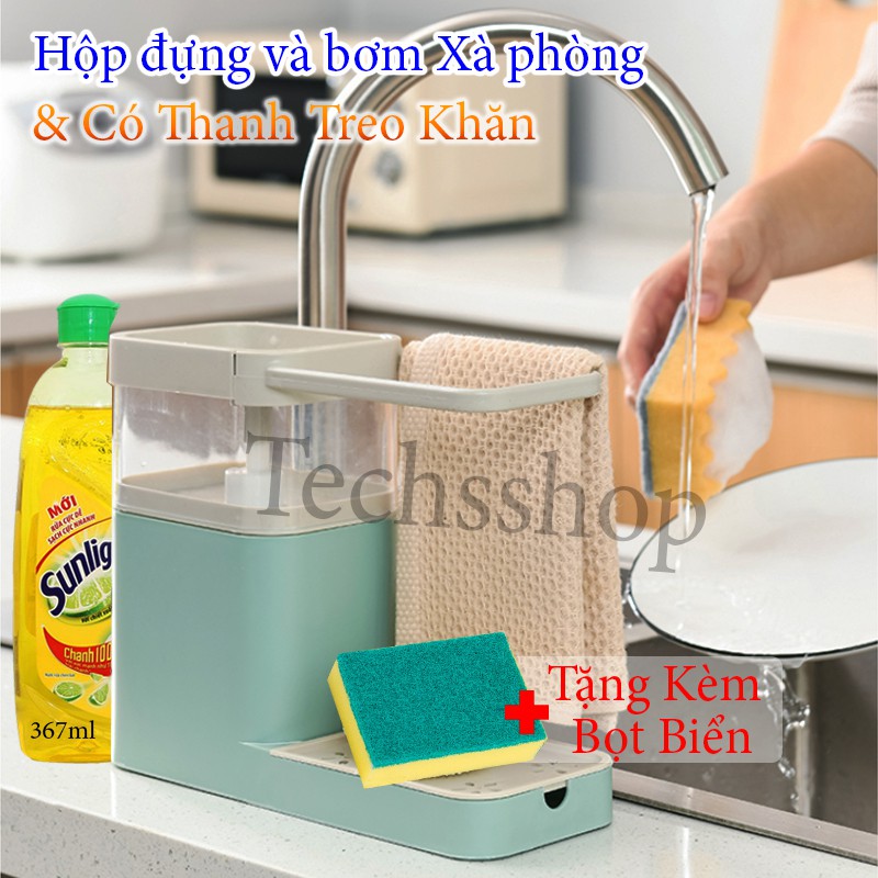 Hộp Đựng Và Bơm Nước Rửa Chén Có Thanh Treo Khăn Và Khe Hứng Nước Trong Nhà Bếp Đa Năng 4in1 - Tặng Miếng Bọt Biển