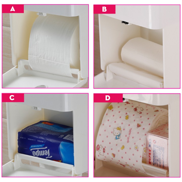 - Có 2 khe rút giấy cho giấy cuộn và giấy hộp