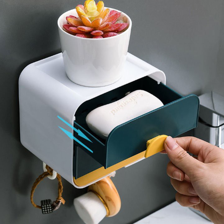 Hộp Để Đồ Nhà Tắm, Hộp Đựng Giấy Vệ Sinh, Xà Bông Xà Phòng Có Móc Treo Tiện Lợi