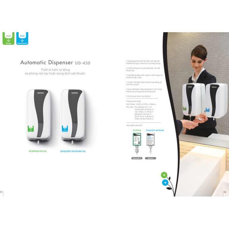 Hiện nay, hầu hết các cao ốc văn phòng (building), nhà hàng, khách sạn, cafe 4 – 5 sao, sân bay, trung tâm thương mại, văn phòng làm việc của các công ty thường được trang bị hộp đựng xà bông cảm ứng tự động Saraya UD-450 vì tính tiện lợi, sang trọng của nó.