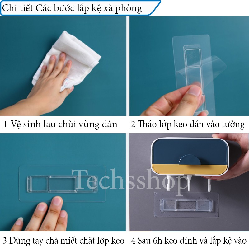 Hộp nhỏ gọn vừa mọi cục xà phòng (xà bông) và đơn giản hơn kệ lắp đặt nhanh chóng với miếng dán siêu bám dính