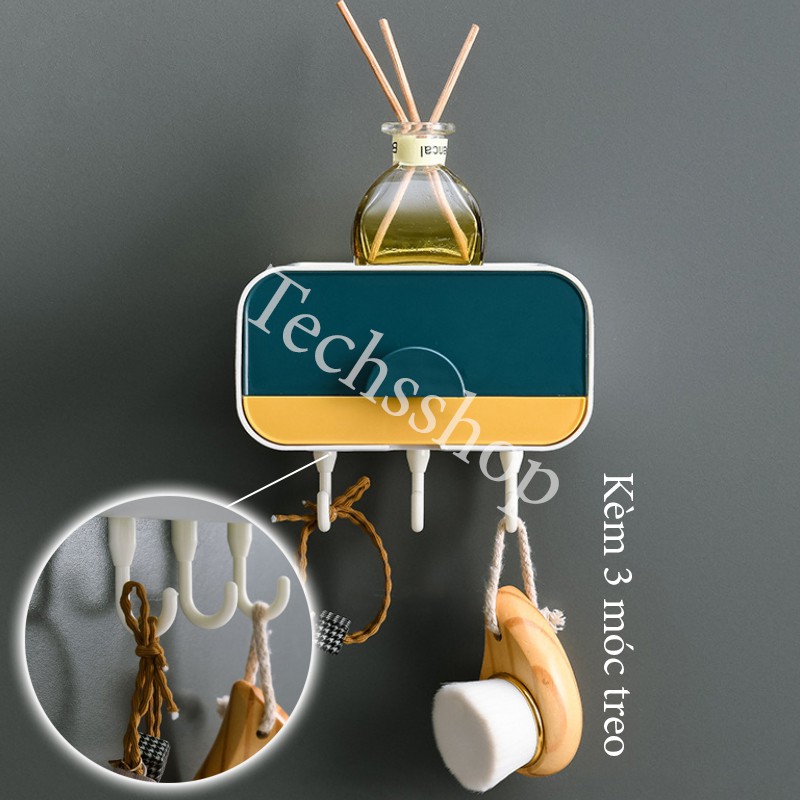 Hộp xà phòng có thêm 3 móc treo tiện lợi móc treo bông tắm, cọ chà lưng, dụng cụ sinh hoạt hằng ngày,......