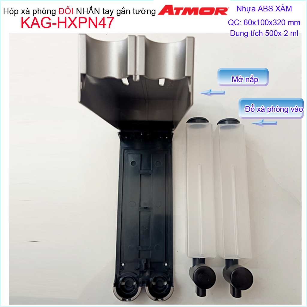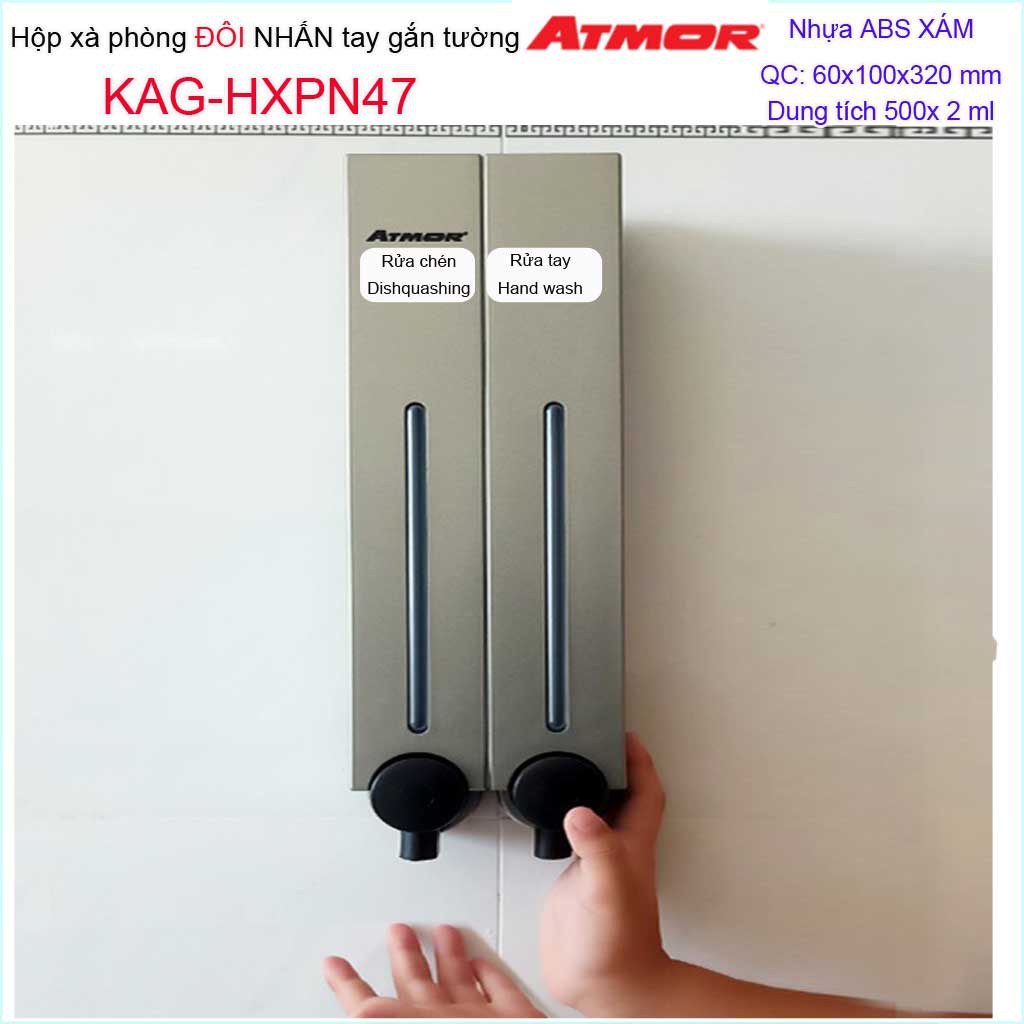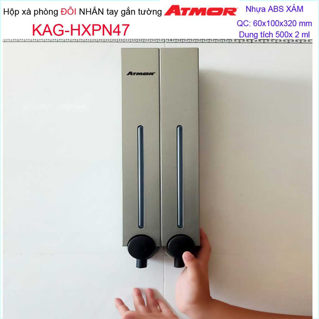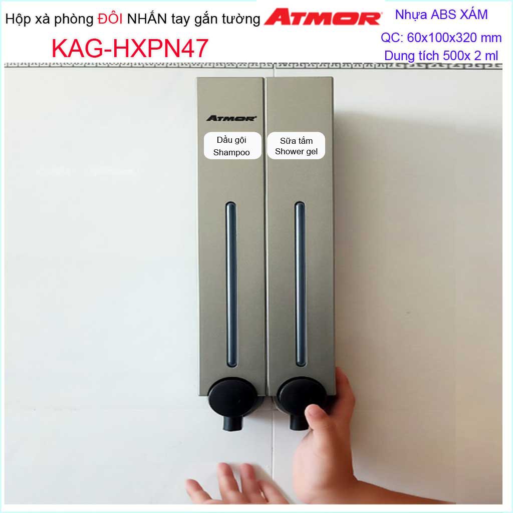 Giới thiệu Hộp nhấn xà phòng Atmor KAG-HXPN47-grey xám, bình xịt xà bông 500ml x2 thiết kế sang trọng nhấn êm siêu bền
