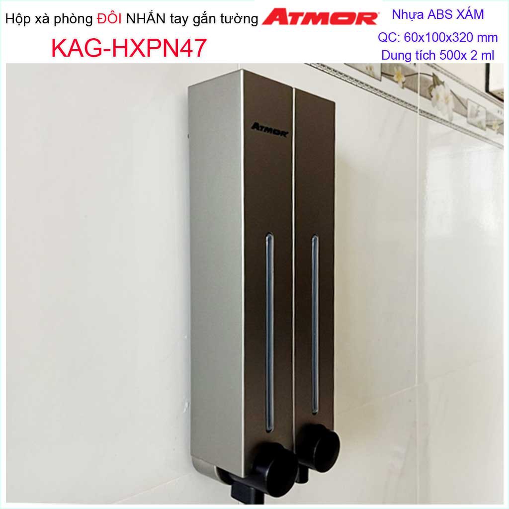 Hộp nhấn xà phòng Atmor KAG-HXPN47-grey xám, bình xịt xà bông 500ml x2 thiết kế sang trọng nhấn êm siêu bền