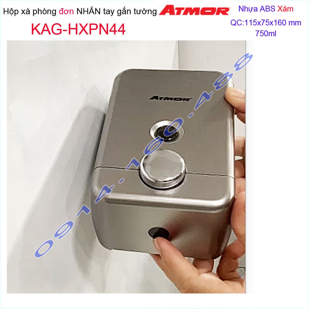 Hộp đựng xà phòng Atmor KAG-HXPN44-Grey-Xám, hộp đựng sữa tắm dầu gội đầu 750ml nhấn êm thiết kế sang trọng siêu bền