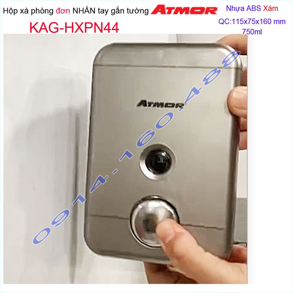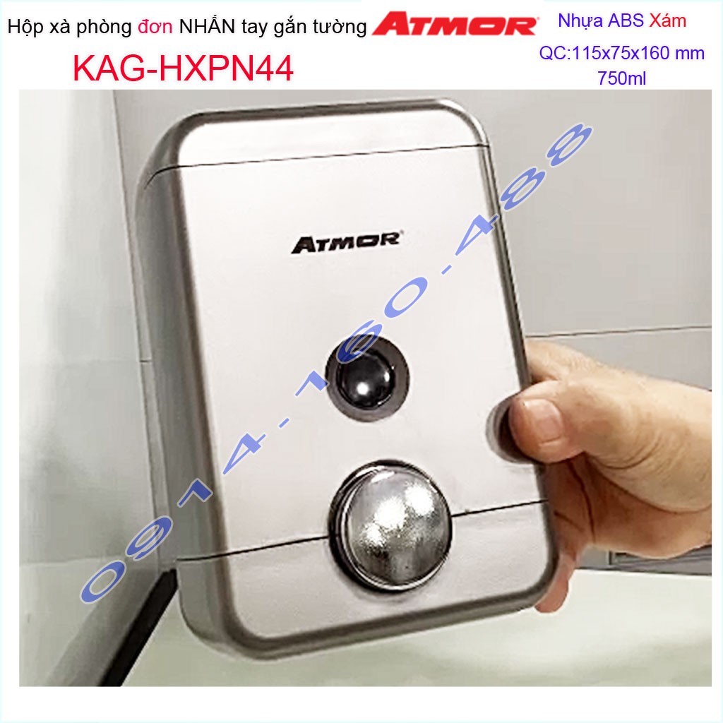 Hộp đựng xà phòng Atmor KAG-HXPN44-Grey-Xám, hộp đựng sữa tắm dầu gội đầu 750ml nhấn êm thiết kế sang trọng siêu bềnKích thước 115mmx75mmx160mm ( dung tích 750ml)