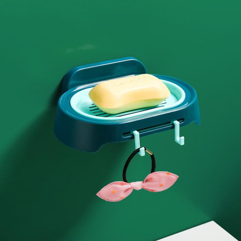 Hộp đựng xà phòng dán tường kèm móc treo
