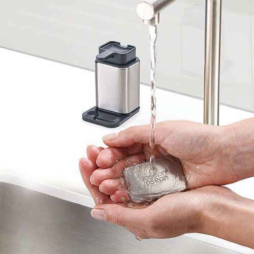 Mỗi khi cần rửa tay, bạn sử dụng miếng thép vệ sinh khử mùi Joseph Joseph trước nếu trước đó tay bạn tiếp xúc với những loại thực phẩm nặng mùi như cá, tỏi, hành… Sau đó, bạn tiếp tục rửa lại tay bằng nước rửa tay phía bên dưới như bình thường để làm sạch hoàn toàn bàn tay.