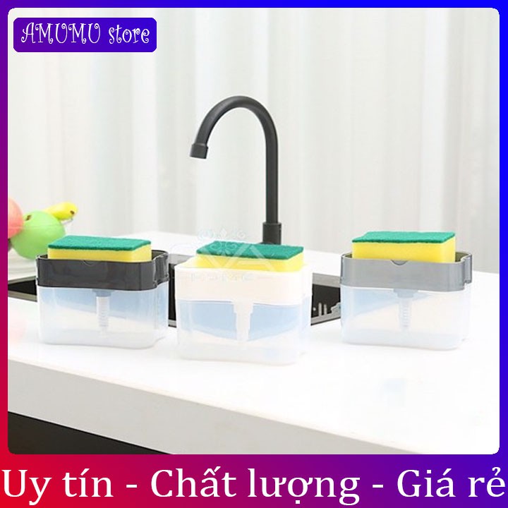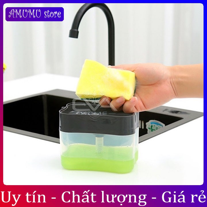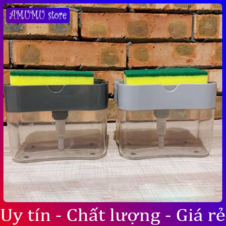 Hộp đựng xà phòng, nước rửa chén bơm tự động( tặng kèm miếng bọt biển rửa bát)