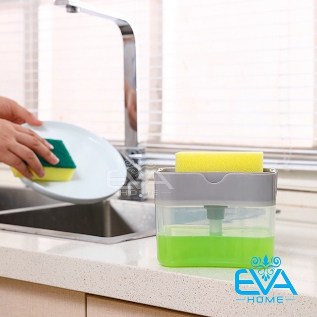 Giới thiệu Hộp Đựng Xà Phồng Nước Rửa Chén Bát Có Vòi Bơm Tự Động Tiện Dụng Tặng Kèm Miếng Bọt Biển Rửa Bát