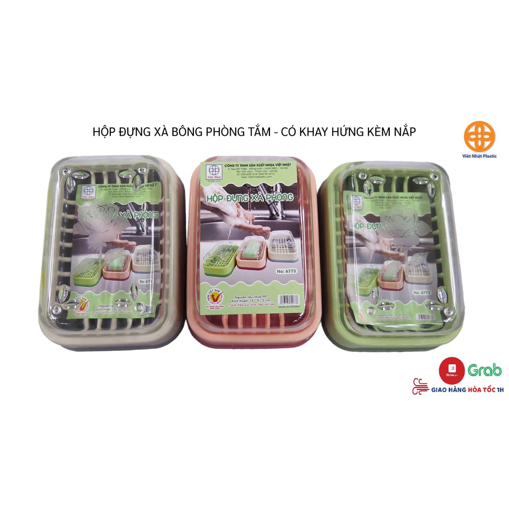 Hộp đựng xà phòng Việt Nhật có kèm khay hứng và nắp nhựa trong mẫu mã đẹp