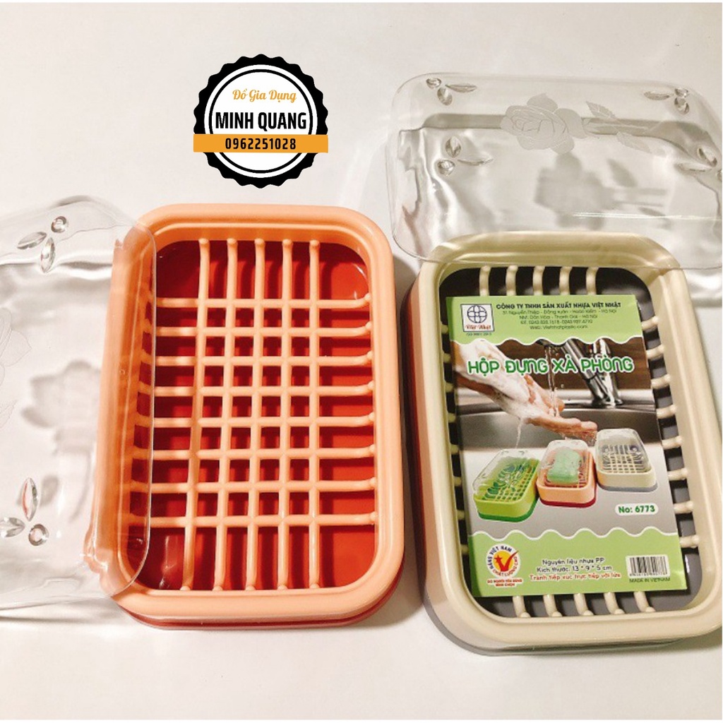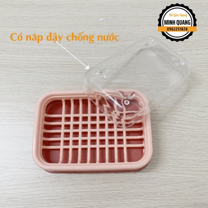 Hộp Đựng Xà Phòng, Xà Bông Tắm Có Nắp Đậy Nhựa Việt Nhật - Kệ Đựng Xà Phòng Có Khay Hứng Nước Tiện Lợi
