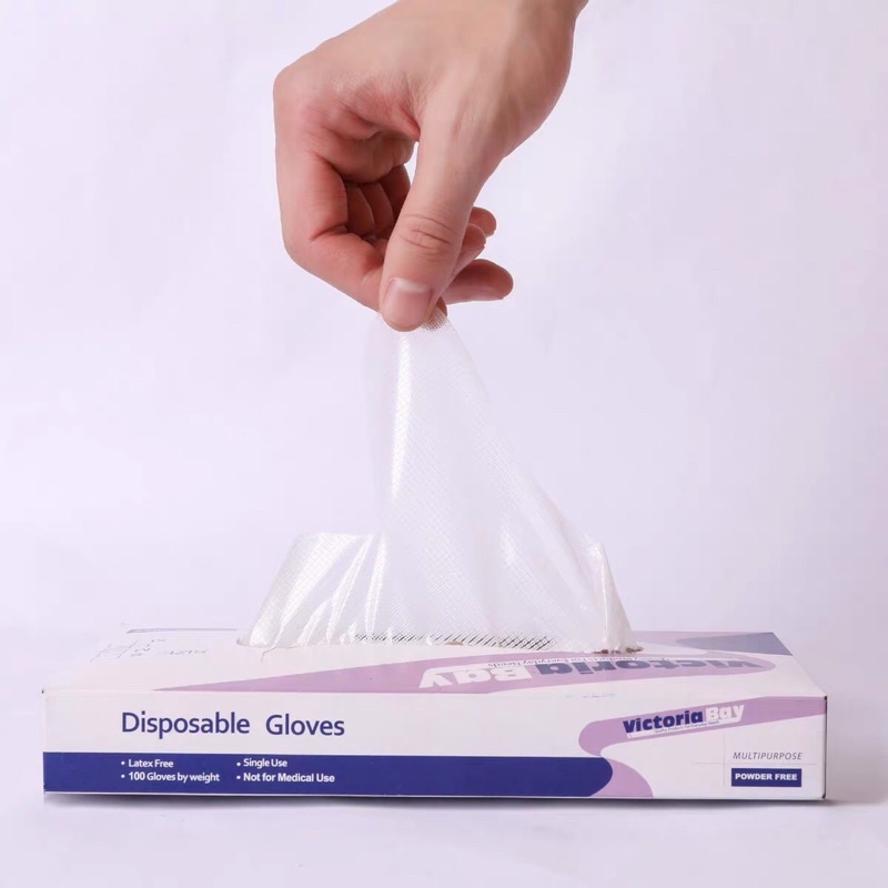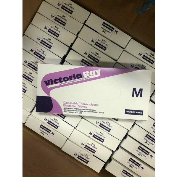 - Găng tay làm bếp nấu ăn vệ sinh Victoria Bay được làm từ chất liệu TPE siêu dai, không mùi, chống nhăn hộp 100 cái, an toàn khi sử dụng.