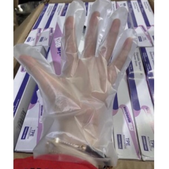 - Găng tay làm bếp nấu ăn vệ sinh Victoria Bay được làm từ chất liệu TPE siêu dai, không mùi, chống nhăn hộp 100 cái, an toàn khi sử dụng.