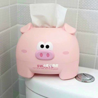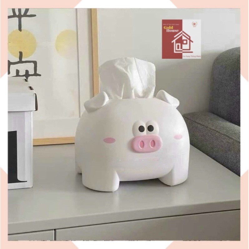 Hộp giấy ăn đựng khăn giấy hình lợn siêu cute dễ thương màu trắng và hồng