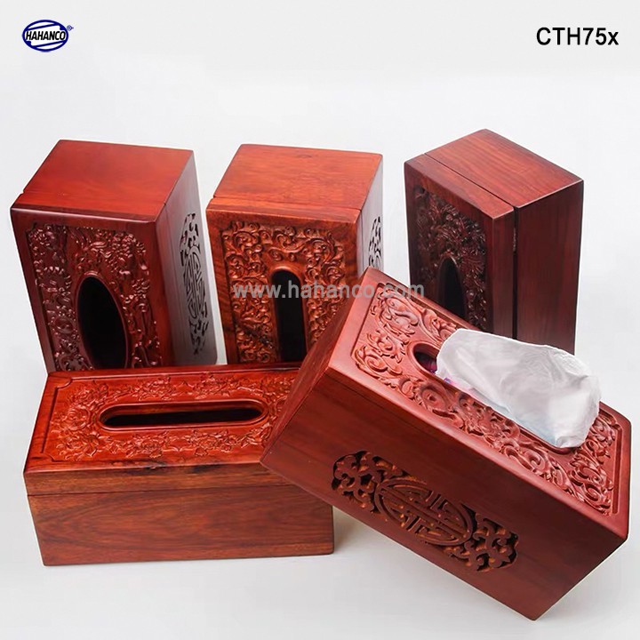 Giới thiệu Hộp giấy ăn gỗ Hương, Long Phụng sum vầy, loại to hàng đẹp [CTH750] HAHANCO