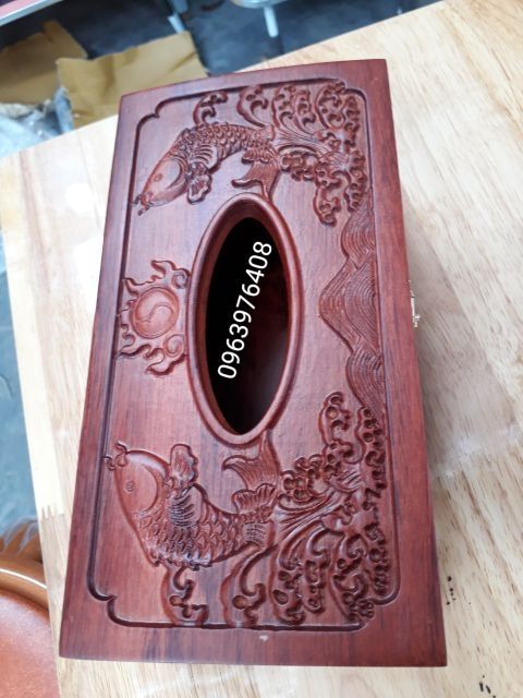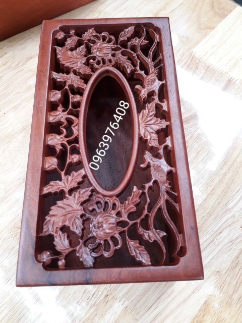 Hộp giấy ăn được làm bằng gỗ hương đường nét tinh sảo nhìn là mê và sờ là mượt nhé các bạn.