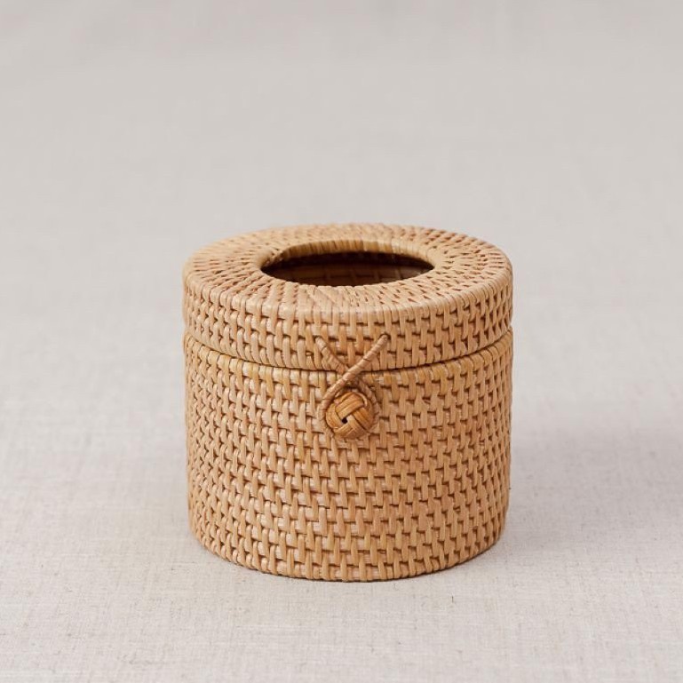 Hộp giấy ăn hình tròn bằng mây guột, Kích thước 14x11cm
