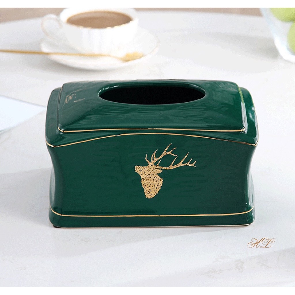 Hộp giấy ăn sứ xanh cổ vịt hươu vàng sang chảnh
