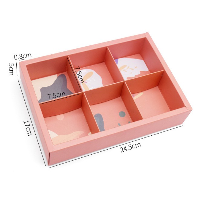 Hộp giấy có quai xách đựng bánh kẹoLoại 6 ngăn: 25x17x5.3cm. Giá 22.000/1 hộp