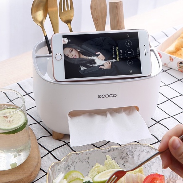 Nhà cửa & Đời sống > Sắp xếp nhà cửa > Hộp khăn giấy || Hộp giấy để bàn Ecoco có 2 ngăn cắm phụ kiệnCòn hàng