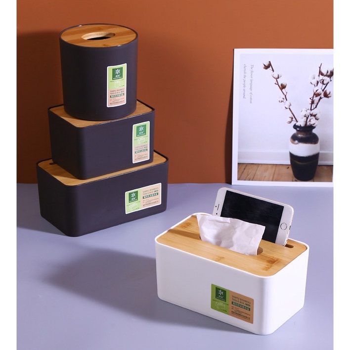 Nhà cửa & Đời sống > Sắp xếp nhà cửa > Hộp khăn giấy || Hộp Giấy Nắp Tre Tròn Vuông Sang TrọngCòn hàng