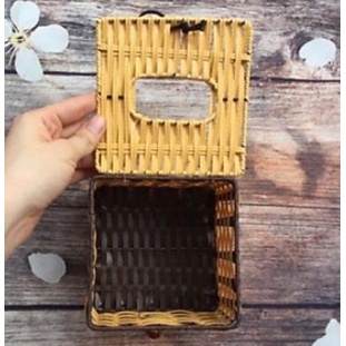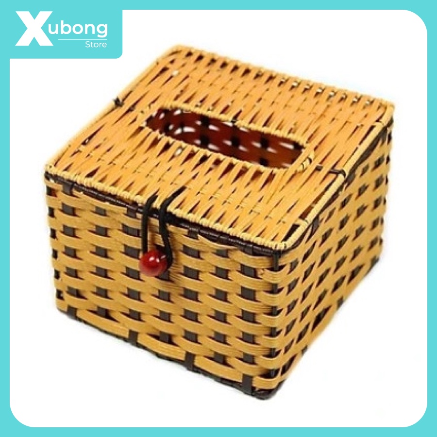 - Ống vuông nhựa đan giả mây kiểu dáng sang trọng, dùng đựng giấy để bàn ăn, phòng khách