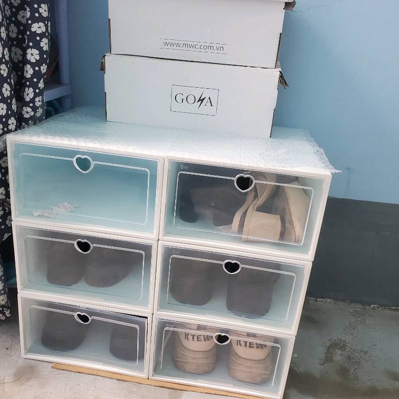 - Bạn có thể xếp chồng nhiều hộp thành 1 kệ đựng giầy cứng cáp. Có thể di chuyển dễ dàng