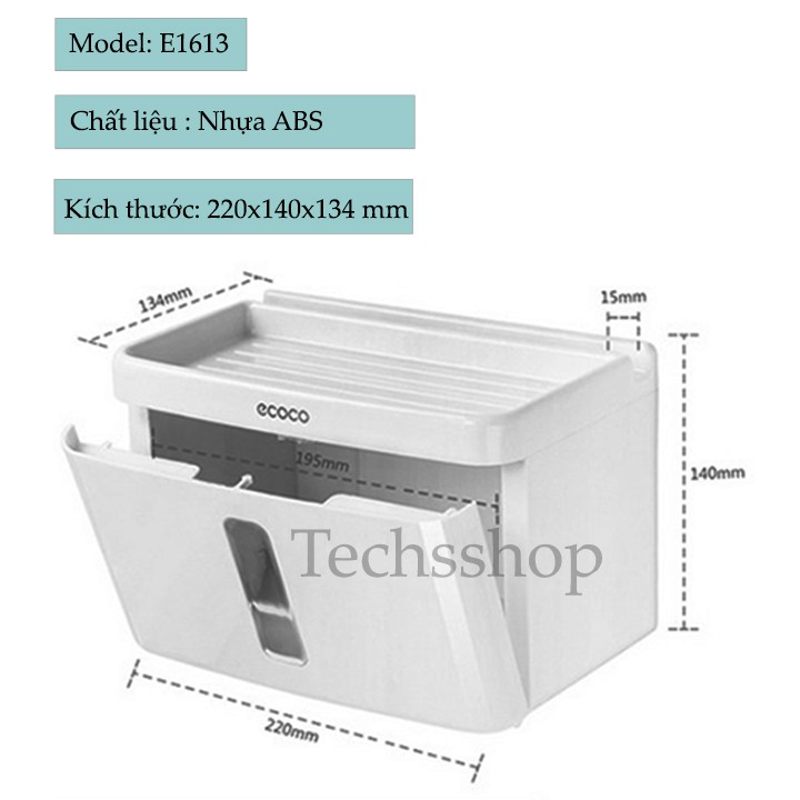 Model e1613 cũng tương tự model e1612, kiểu dáng hình chữ nhật, kích thước dài lớn hơn, có khe để điện thoại1 Thông tin đặc điểm hộp đựng giấy vệ sinh
