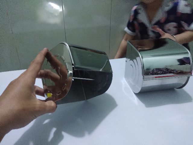 sản phẩm làm từ 100% inox 304 bóng.có 2 loại. hốpngiaay vếninh inox 304 kín và hộp giấy vệ sinh inox 304 nữa kín
