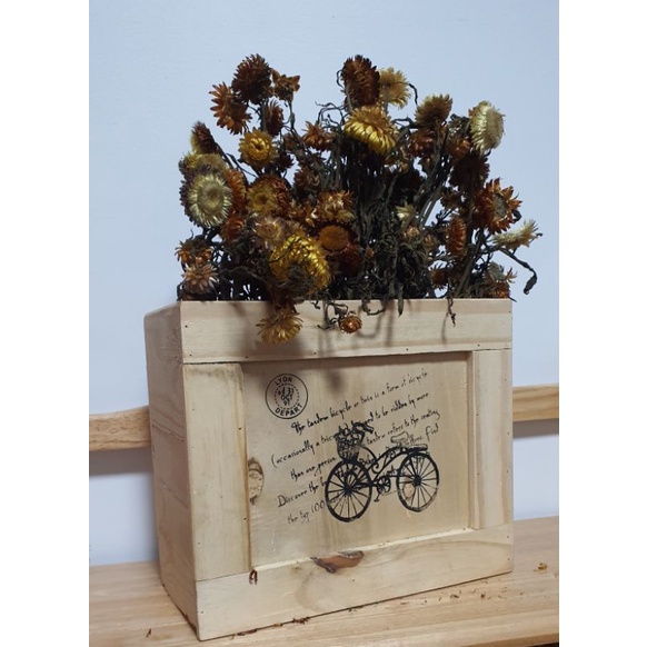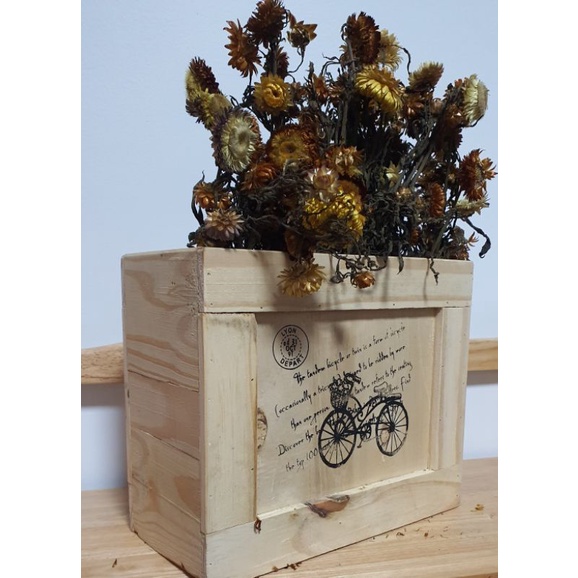 Hộp gỗ hình xe đạp dùng cắm hoa trang trí nhà cửa.Ngang 30cm cao 25cm rộng 15cm.