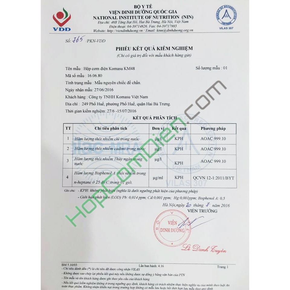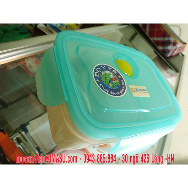 Hộp cơm điện KOMASU Việt Nam được Bộ Y Tế kiểm nghiệm chất lượng nhựa an toàn không độc như loại hộp cơm điện nhựa rẻ tiền khác. Năm 2016 vừa qua công ty lại lại lần kiểm nghiệm lại và chất lượng vẫn đảm bảo tuyệt đối, nên được người dùng rất an tâm tin tưởng sử dụngThông số: