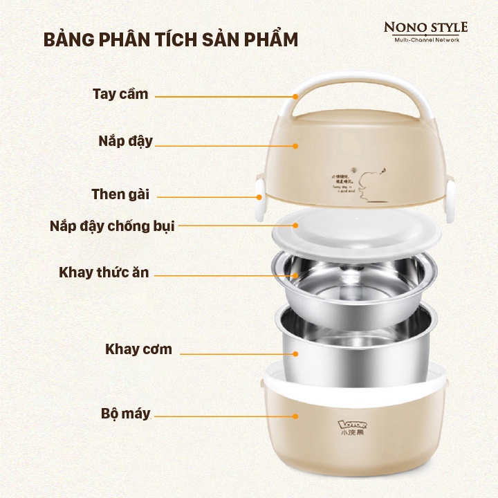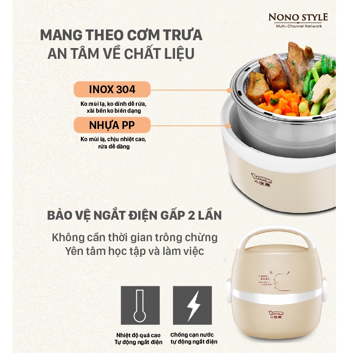 Làm nóng 10 phút, bên trong 2 ngăn đựng bằng inox 304