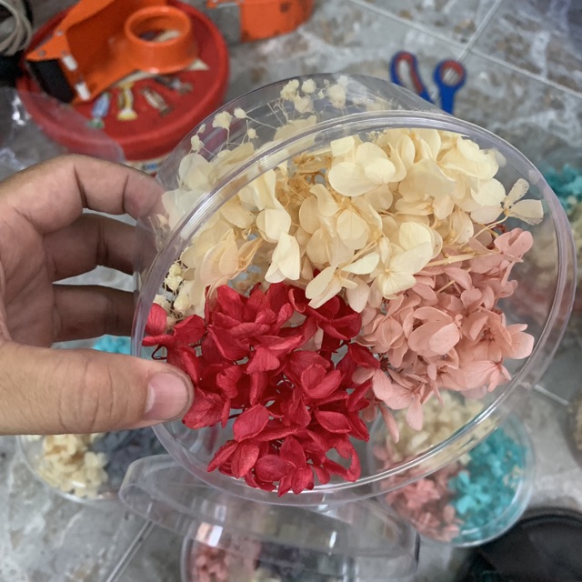 Nhà cửa & Đời sống > Trang trí nhà cửa > Hoa trang trí || Hộp hoa cẩm tua cầu khô kèm baby điểm tóc cô dâuCòn hàng