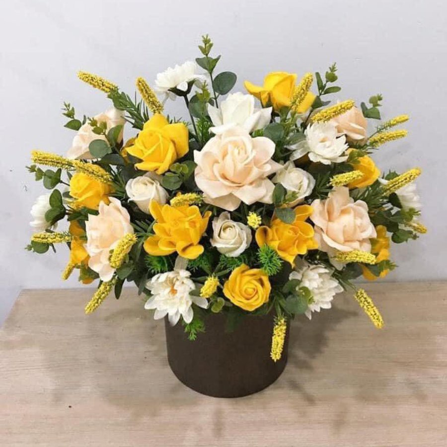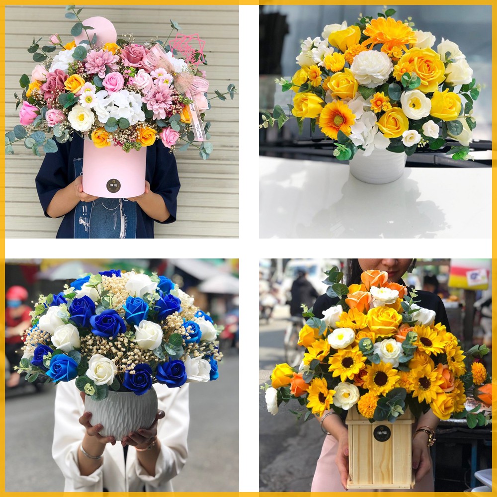 Chất liệu: Được làm từ xà phòng và sáp thơm tán mỏng dưới bàn tay khéo léo của các nghệ nhân để trở thành những bông hoa có sức sống như hoa thật tới 90%Mẫu mã: Đa dạng hoa cầm tay, lẵng hoa, hộp hoa, hoa trang trí với số lượng đa dạng và thiết kế độc đáo.