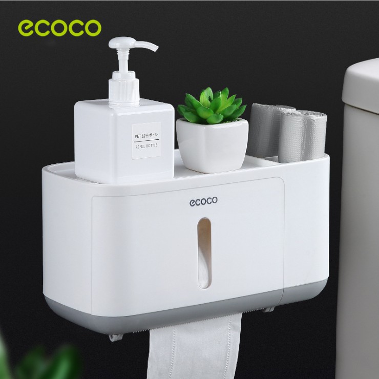 Hộp Kệ Đựng Giấy Vệ Sinh Ecoco Đa Năng 2 Tầng Cao Cấp Có 2 Lỗ Đựng Tiện Dụng