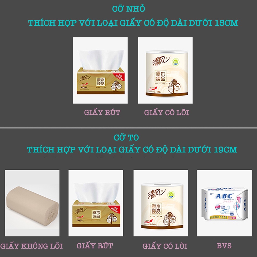 - Kệ dùng treo các cuộn giấy có chiều dài nhỏ hơn 20cm , phía dưới kệ có rãnh răng cưa để xé giấy, thuận tiện hơn trong việc lấy giấy