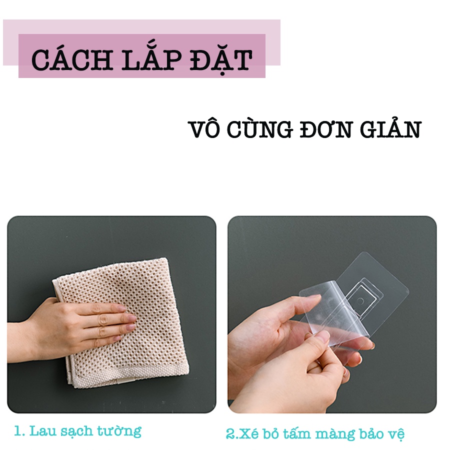 - Kệ được lắp đặt dễ dàng bằng miếng keo dán đi kèm, không cần khoan tường bắt vít phức tạp.