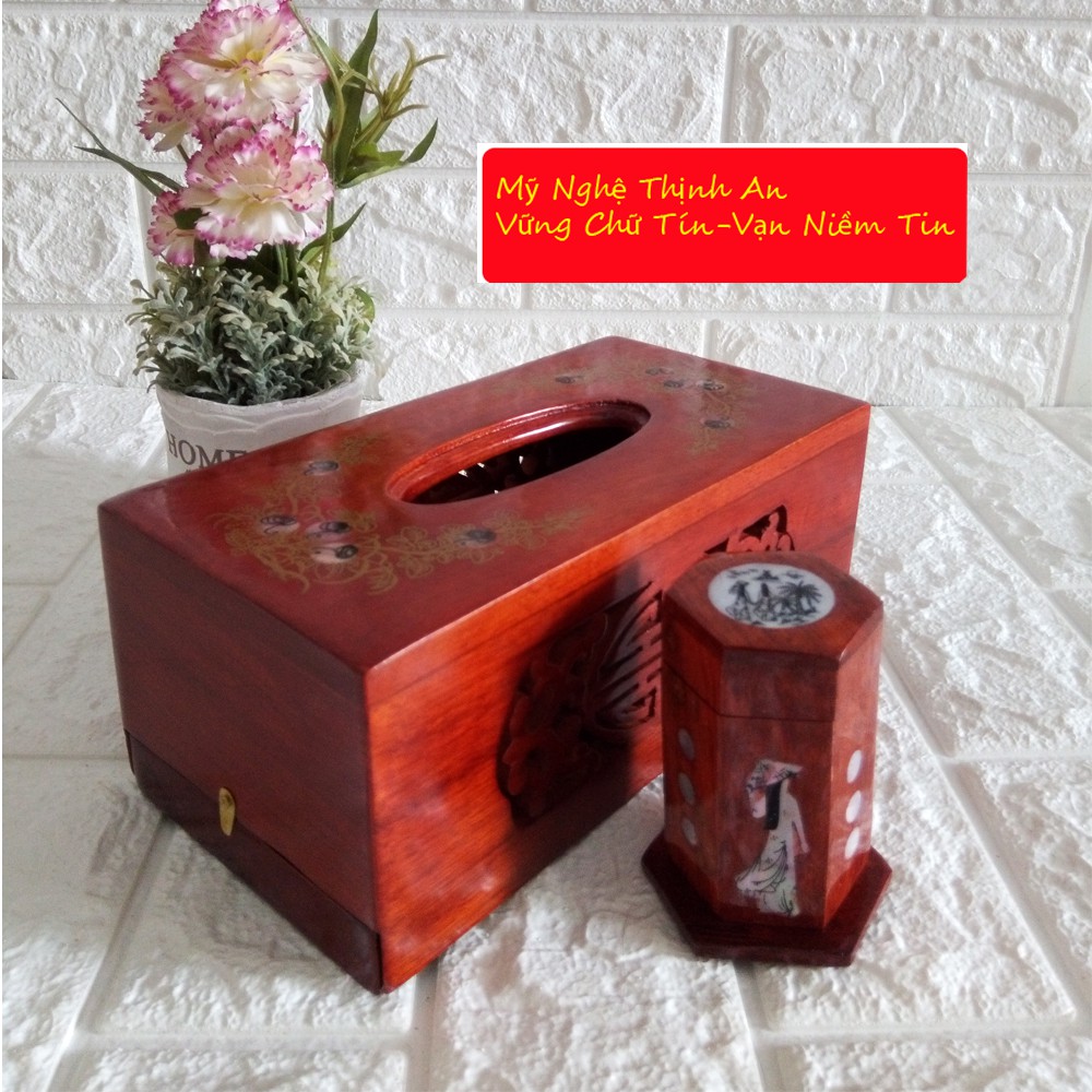 Các vị khách đến nhà chỉ cần nhìn vào hộp giấy đã thấy được sự chu đáo đến từng chi tiết của gia chủ . Bởi chiếc hộp gỗ mỹ nghệ khảm trai không chỉ là một đồ dùng mà còn là một vật trang trí tinh tế cho ngôi nhà.